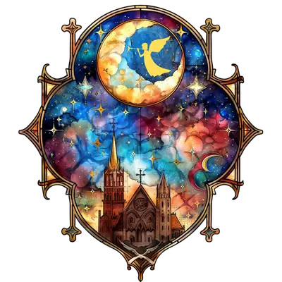 See allThis captivating DTF transfer features an ethereal stained-glass style illustration of a majestic gothic church, crowned by a golden angel blowing a horn against a vibrant, star-filled celestial sky. Swirls of deep blues, cosmic purples, fiery oranges, and soft golds create a breathtaking backdrop, evoking wonder and spiritual awe. This intricately detailed ready to press design brings a sense of timeless faith and beauty to any garment. This spiritual design is perfect for individuals looking to express their faith with artistic flair, church congregations creating matching apparel for events, or crafters seeking unique heat transfer designs for gifts. It's an ideal iron on transfer for celebrating religious holidays like Christmas and Easter, special church anniversaries, baptisms, confirmations, or simply for everyday wear that uplifts and inspires. Small t-shirt businesses will find this a popular addition to their faith-based collections. Applying this heat press transfer is effortless, suitable for cotton, polyester, cotton-poly blends, and even nylon fabrics. Achieve professional results using a heat press (300-325°F for 15 seconds with medium pressure) or a household iron. Forget weeding—simply peel and press! It's perfect for creating custom t-shirts, comfortable hoodies, cozy sweatshirts, practical tote bags, charming pillow covers, and even unique denim jackets. For lasting vibrancy, wash your finished shirt design inside out and tumble dry on low heat. Experience superior quality with this ready to press transfer, showcasing vibrant, full-color printing with exceptional fine detail. The design is crack-resistant and soft to the touch, avoiding the heavy, stiff feel of traditional vinyl. Each direct to film transfer is meticulously printed on premium DTF film, featuring a strong adhesive backing to ensure professional, durable results that stand the test of time and wash.