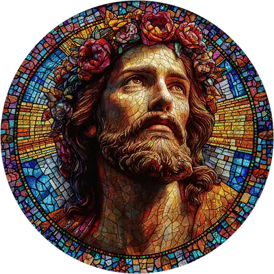 Stained Glass Jesus with Roses DTF Transfer | Christian Faith Art