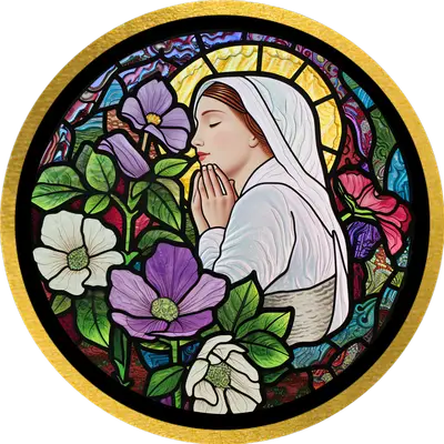 Stained Glass Praying Virgin Mary DTF Transfer with Flowers