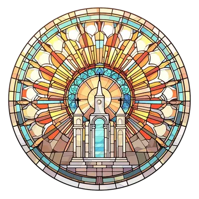 Stained Glass Sacred Temple DTF Transfer - Vibrant Church Window Design