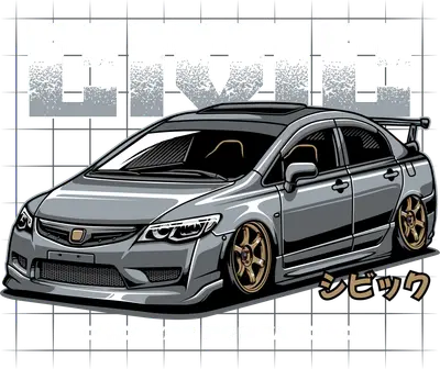 Stanced Honda Civic FD2 Power DTF Transfer - JDM Car Enthusiast Design