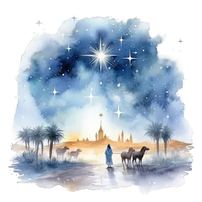 Star of Bethlehem Nativity Journey Watercolor DTF Transfer