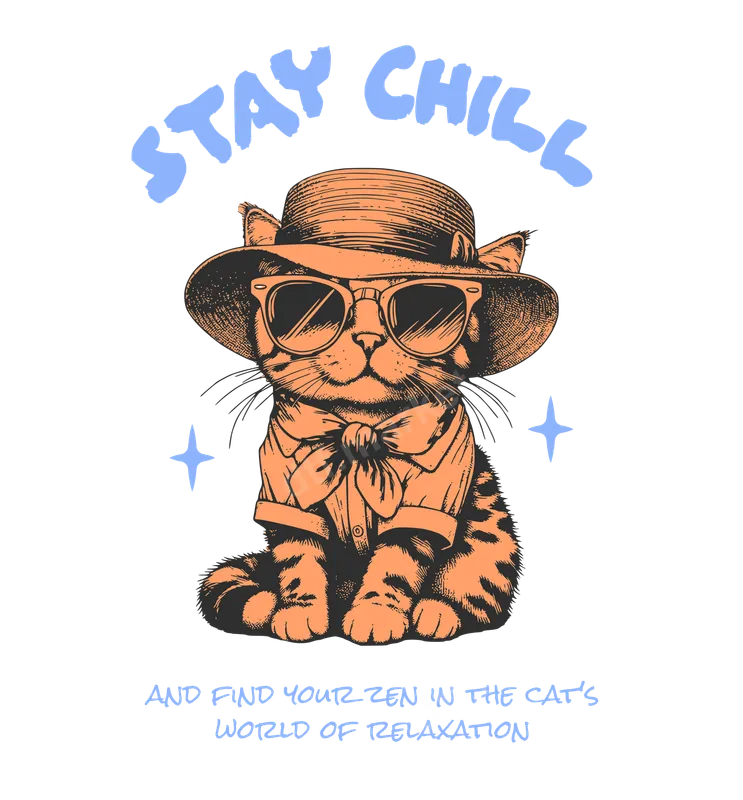 See allImmerse yourself in ultimate relaxation with our "Stay Chill" cool cat DTF transfer. This unique design features a suave, anthropomorphic cat sporting stylish sunglasses, a smart fedora, and a dapper bow tie, exuding an undeniable aura of calm. Above, "STAY CHILL" is boldly presented in a distressed light blue font, complemented by "AND FIND YOUR ZEN IN THE CAT'S WORLD OF RELAXATION" below. This ready to press transfer captures a blend of humor, retro style, and positive vibes, making it a perfect statement piece for personalized apparel. This trendy DTF transfer is ideal for cat lovers, pet owners, and anyone who appreciates a laid-back lifestyle. It makes a fantastic gift for birthdays, holidays, or just because, for friends and family who embody a "stay chill" attitude. Perfect for personalizing apparel for casual outings, weekend relaxation, or adding a unique touch to your everyday wardrobe, this design resonates with those who love unique animal graphics and whimsical charm. Our premium heat press transfer is designed for effortless application across a wide range of fabrics, including cotton, polyester, and blends. For best results, apply with a heat press at 300-325°F for 15 seconds with medium pressure, then perform a cool peel. This versatile iron on transfer can also be applied with a household iron. Enjoy the convenience of a ready-to-press design with absolutely no weeding required, simplifying your customization process. Experience the superior quality of our professional-grade apparel transfer. Crafted with vibrant, long-lasting inks and strong adhesive, this t-shirt transfer ensures a soft-to-the-touch feel that stretches with your fabric, resisting cracks and peels even after multiple washes. The colors remain bright and true, bringing your cool cat design to life with exceptional detail and durability. Elevate your garments with a design that not only looks great but also stands the test of time, reflecting excellence.
