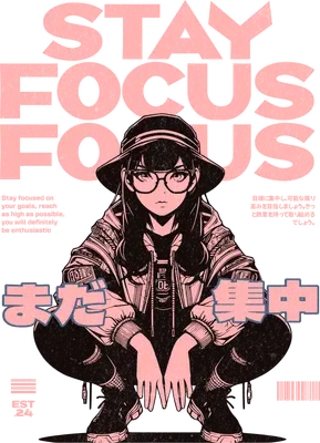 Stay Focus Anime Girl DTF Transfer | Urban Streetwear Art