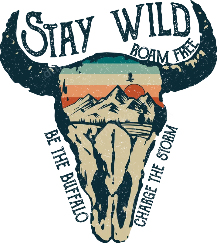 Stay Wild Buffalo Skull DTF Transfer | Western Roam Free Mountain Sunset Design