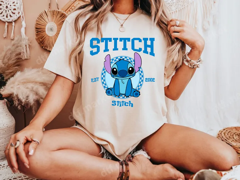 See allDive into nostalgia with our exclusive Stitch Est 2002 DTF transfer, featuring everyone's favorite mischievous alien in a classic collegiate-style design. This vibrant direct to film transfer showcases Stitch within a checkerboard circle, flanked by "EST 2002," a nod to his debut. Bold blue "STITCH" lettering tops the design, with a playful script version below, creating a charmingly retro aesthetic. This high-quality graphic is ready to press, making personalization simple. Perfect for Disney enthusiasts, Lilo & Stitch fans, or anyone who loves early 2000s cartoon charm. This heat press transfer makes an excellent personalized gift for birthdays, fan conventions, or adding unique flair to everyday wear. Create custom t-shirts, sweatshirts, tote bags, or matching outfits for theme park vacations, adding a fun, nostalgic element to any garment. Our premium iron on transfer adheres beautifully to cotton, polyester, and blends. Application is hassle-free: use a heat press at 300-325°F for 15 seconds with medium pressure, then peel cold. A household iron can also be used. No tedious weeding required, so you achieve professional results with ease. Experience superior quality with our durable heat press design. Each DTF transfer is printed with vibrant, crack-resistant colors, looking fantastic wash after wash. The soft-to-touch finish provides maximum comfort. Crafted on professional-grade DTF film with strong adhesive, this apparel transfer promises excellent adhesion and a professional finish every time.