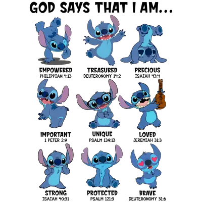 Stitch 'God Says I Am' Bible Verse DTF Transfer | Faith Affirmation Design