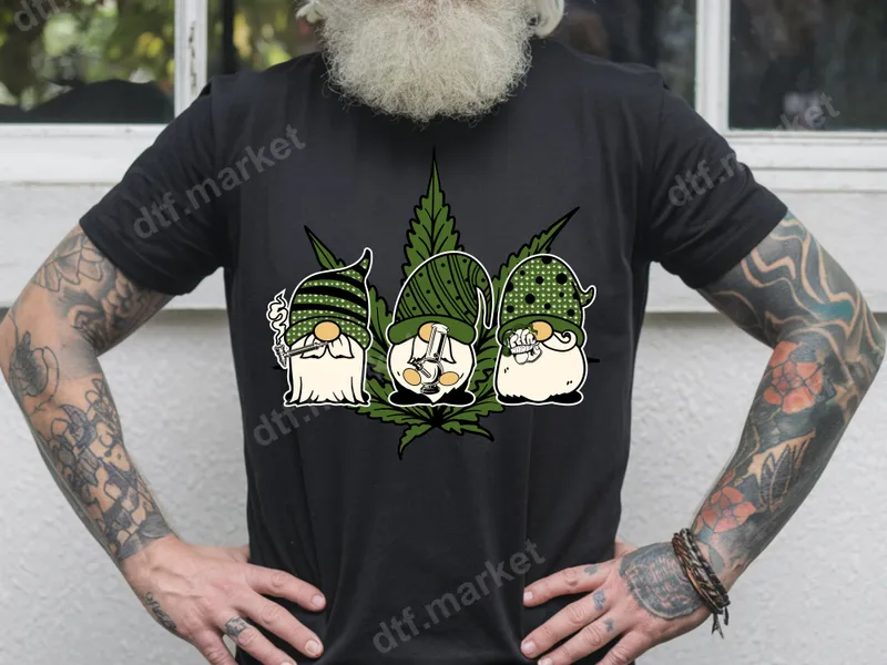 Stoner Gnomes Weed Leaf DTF Transfer | Funny 420 Ready to Press Design