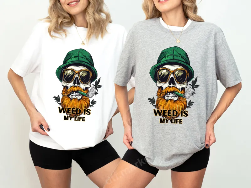 See allEmbrace the high life with our 'Weed Is My Life' DTF transfer, featuring a cool, rebellious skull character. This eye-catching design showcases a skull sporting stylish sunglasses, a laid-back green bucket hat, and a vibrant orange beard, all while puffing on a blunt. Cannabis leaves subtly adorn the sides, emphasizing the theme. The bold 'WEED IS MY LIFE' text below completes this ready to press graphic, perfect for making a statement. This unique design is ideal for cannabis enthusiasts, stoners, or anyone who loves 420 culture and bold, humorous apparel. It's a fantastic choice for casual wear, music festivals, parties, or just expressing your laid-back attitude. A perfect gift for friends who appreciate adult humor and a good laugh. Create custom t-shirts or hoodies that stand out and celebrate your passion. Our premium heat press transfer works seamlessly on a variety of fabrics including cotton, polyester, and blends. Application is a breeze: simply use a heat press at 300-325°F for 15 seconds with medium pressure, or apply with a household iron. Unlike traditional vinyl transfers, there's no weeding required, making your customization process quick and effortless. This iron on decal is designed for convenience. Experience superior quality with our Direct-to-Film transfers. Each heat transfer boasts vibrant colors, excellent wash durability, and resistance to cracking or peeling, ensuring your design looks fresh for years. The soft-touch finish feels comfortable on any garment. Crafted with professional-grade DTF film and strong adhesive, this apparel transfer delivers a professional look and feel every time.