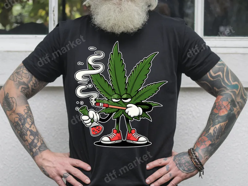 See allThis vibrant direct to film (DTF) transfer features a classic cartoon cannabis leaf character, complete with expressive, half-closed eyes, a lit joint, and a small beaker-style bong. Sporting cool red sneakers and white gloves, this ready to press design exudes a laid-back, humorous stoner vibe, perfect for those who appreciate fun, irreverent cannabis culture. The intricate details and bold outlines make this a standout graphic. This unique heat transfer is ideal for cannabis enthusiasts, casual smokers, and anyone with a good sense of adult humor. It's perfect for 4/20 celebrations, music festivals, parties, or just everyday wear to show off your chill personality. A fantastic gift for friends who enjoy weed-themed apparel, birthdays, or as a fun surprise for a fellow connoisseur. This custom transfer is sure to spark conversations and smiles. Applying this t-shirt transfer is simple and efficient. Our high-quality DTF transfers are compatible with a wide range of fabrics, including cotton, polyester, and various blends. For best results, use a heat press at 300-325°F for 15 seconds with medium pressure, then a cold peel. A household iron can also be used with care for personal projects. Enjoy the ease of a ready to press transfer with no tedious weeding required. Experience professional-grade quality with this apparel transfer. Our DTF film ensures vibrant colors that pop, superior durability against cracking and peeling, and a soft-to-touch finish that feels great on any garment. The strong adhesive guarantees a long-lasting design that withstands washes, making your customized clothing look fresh wear after wear. Get a premium heat press design that lasts.