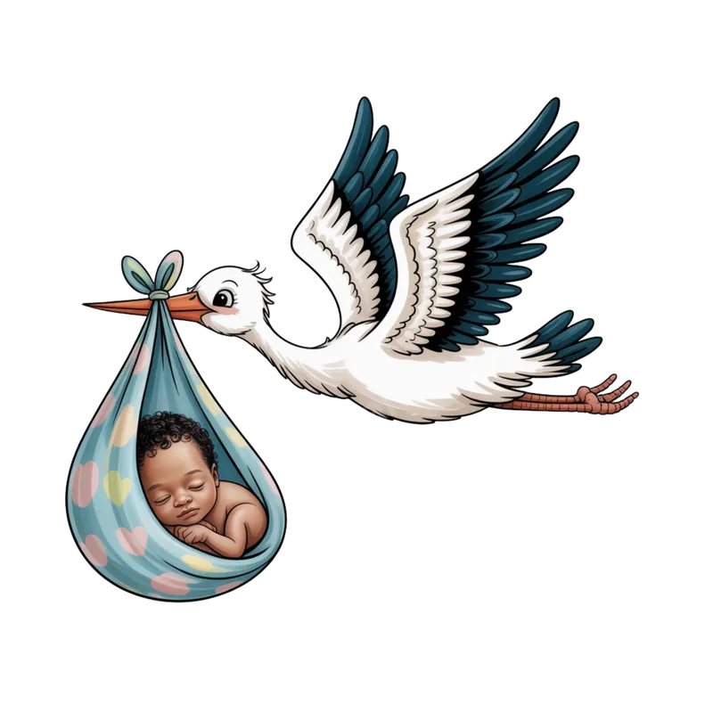 Stork Delivering Baby DTF Transfer - New Baby Arrival Design