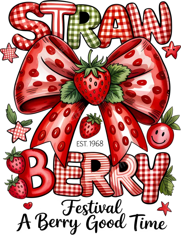 See allEmbrace the sweet essence of summer with our 'Strawberry Festival A Berry Good Time EST. 1968' premium DTF transfer. This charming design features playful gingham lettering in red and green, a large, beautiful watercolor-style bow, and an array of juicy strawberries. It captures the joyful spirit of a classic country fair, making it a perfect heat press ready addition to any summer wardrobe or crafting project. This delightful iron on transfer is ideal for anyone who loves summer festivals, fresh fruit, or simply a touch of nostalgic charm. It’s perfect for attendees of local strawberry festivals, family outings, farmers' market enthusiasts, or as a thoughtful gift for gardeners and bakers. Create matching family shirts for a festival day, or personalize an apron for a strawberry shortcake lover with this unique design. Applying this apparel transfer is quick and easy. It works beautifully on a wide range of fabrics including cotton, polyester, and blends. For best results, use a heat press at 300-325°F for 15 seconds with medium pressure. Even a household iron can be used with care for smaller projects. Best of all, there’s no tedious weeding required, so you can achieve professional results effortlessly. Crafted with high-quality DTF film and vibrant, eco-friendly inks, this t-shirt transfer ensures a durable, crack-resistant finish that feels soft to the touch. The colors will remain bright and true, wash after wash, allowing you to enjoy your personalized garments for seasons to come. Elevate your apparel with this festive and sweet ready to press design.