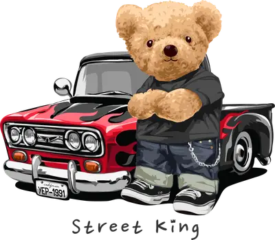 Street King Teddy Bear Hot Rod DTF Transfer | Cool Car Design