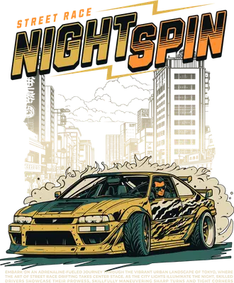 Street Race Nightspin JDM Drifting Car DTF Transfer City Skyline