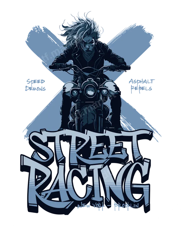 See allDive into the raw energy of urban street culture with our 'Street Racing' DTF transfer. This striking design features a fierce biker with wild hair and a leather jacket, atop a powerful motorcycle, set against a bold 'X' graphic. Emblazoned with 'Speed Demons' and 'Asphalt Rebels,' and the prominent graffiti-style 'Street Racing New York - Brooklin' text, this direct to film transfer captures the thrill of the ride. It's a ready to press design perfect for anyone who lives for speed and the open road. This edgy apparel transfer is ideal for motorcycle enthusiasts, street racing fans, and anyone with a rebellious spirit. It makes a perfect gift for riders, gearheads, or friends who love custom graphic tees and punk rock aesthetics. Great for showcasing your passion at motorcycle rallies, car shows, or simply adding a unique touch to your everyday wardrobe. Elevate your style with a heat press ready design that speaks volumes. Applying your new heat transfer is a breeze, whether you're a seasoned pro or a DIY enthusiast. Our premium DTF transfers work seamlessly on a wide range of fabrics including cotton, polyester, and their blends. For best results, use a heat press at 300-325°F for 15 seconds with medium pressure. Even a household iron can achieve great results by applying firm, even pressure. Forget weeding – these iron on decals arrive ready to be pressed, saving you time and effort. Experience superior quality with vibrant colors and crisp details that truly pop. Our DTF transfer film is designed for excellent durability, resisting cracks and peels even after multiple washes. The finish is remarkably soft to the touch, ensuring maximum comfort without the stiff feel often associated with other transfer methods. Get a professional-grade shirt design that looks and feels incredible, making your custom apparel stand out from the crowd.