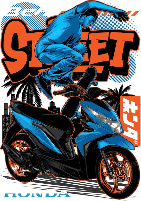 Street Skater Honda Beat Scooter DTF Transfer | Urban Graffiti