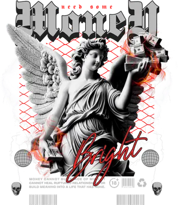Unleash an edgy aesthetic with this DTF transfer featuring a neoclassical angel statue, wings spread wide, holding bundles of cash engulfed in vibrant orange flames. Bold "MONEY" typography in gothic font, complemented by "need some" in red, anchors the design. Lightning bolts and a red grid add an urban edge, while a powerful quote on materialism grounds this ready to press design, blending classical art with modern streetwear. This unique apparel transfer is perfect for individuals embracing streetwear or gothic fashion, or anyone making a statement about consumerism. It's ideal for custom apparel brands, Etsy sellers specializing in graphic tees, or crafters seeking an edgy iron on transfer. Great for music festivals, urban events, or as a thoughtful gift for friends who appreciate artistic social commentary. Applying this high-quality heat press transfer is simple and efficient on cotton, polyester, blends, and nylon. Achieve professional results using a heat press (300-325°F, 15 seconds, medium pressure) or a household iron. This heat press design requires no weeding; just peel and press. Transform custom t-shirts, hoodies, tote bags, and denim jackets. For best longevity, wash inside out, tumble dry low. Experience superior quality with this ready to press transfer. It boasts vibrant, full-color printing, capturing every intricate detail from the angel's shadows to the fiery glow. Our direct to film transfer is crack-resistant, soft to the touch, avoiding the heavy, stiff feel of vinyl. Each DTF transfer is produced on premium film with a strong, durable adhesive backing, ensuring professional-grade results that last.