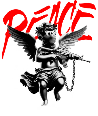 Unleash your rebellious spirit with this striking Angel with Gun DTF transfer. This stylized grayscale cherub, featuring majestic wings, a crown of thorns, and an X-eyed bandana, makes a powerful statement. The angelic figure clutches an assault rifle, creating a stark contrast against the bold, distressed red 'PEACE' typography. This heat press ready transfer blends classic iconography with modern streetwear edge. This unique iron on transfer is perfect for individuals who dare to stand out, urban fashion enthusiasts, or small businesses creating custom apparel with a strong personality. Ideal for statement t-shirts, hoodies, or jackets for music festivals, art shows, or everyday streetwear. It makes an unforgettable gift for friends who appreciate edgy art, ironic messaging, or counter-culture fashion. Elevate your wardrobe or product line with this distinct heat transfer design. Applying this high-quality heat press transfer is simple and efficient. It's compatible with cotton, polyester, blends, and nylon, ensuring versatility. Use a heat press at 300-325°F for 15 seconds, medium pressure, or apply with a household iron. No weeding required—just peel and press, making customization quick. Perfect for custom t-shirts, hoodies, sweatshirts, tote bags, or denim jackets. For lasting durability, wash inside out and tumble dry low. Experience superior quality with this ready to press transfer. It boasts vibrant, full-color printing that captures every intricate detail and gradient of the design. The result is a crack-resistant image that feels soft to the touch, unlike heavy vinyl transfers. Each direct to film transfer is meticulously printed on premium DTF film, with a strong adhesive backing for professional, long-lasting results.