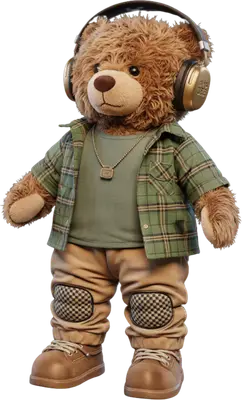 Streetwear Bear DTF Transfer: Headphones, Plaid & Checkerboard