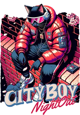 Streetwear Cat DTF Transfer - City Boy Night Out Puffer Jacket Design