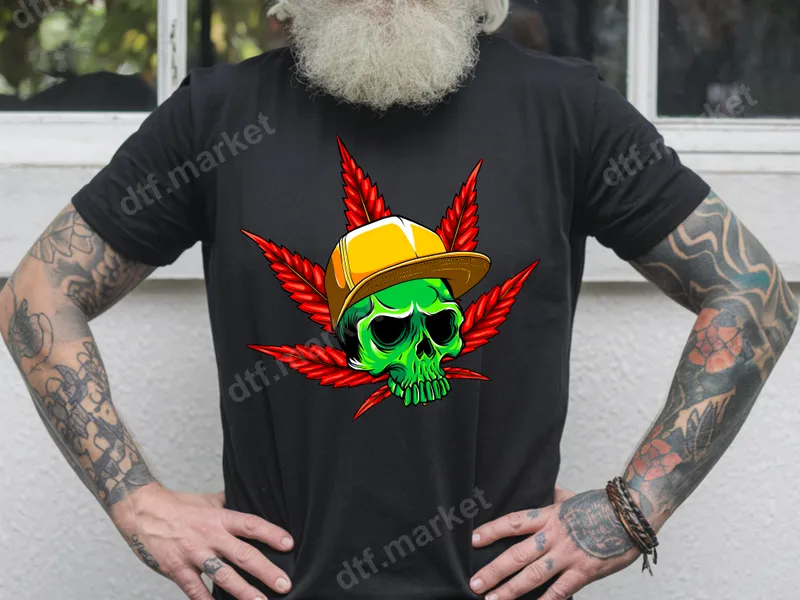 Streetwear Green Skull Cannabis Leaf DTF Transfer Ready to Press