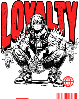Streetwear Loyalty Anime Girl DTF Transfer Design