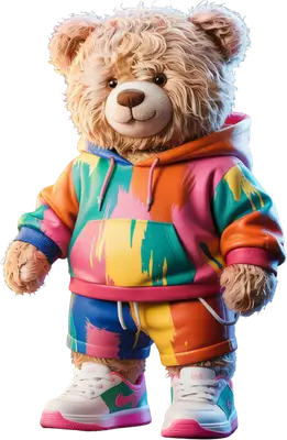 Streetwear Teddy Bear DTF Transfer with Paint Splatter Hoodie Design
