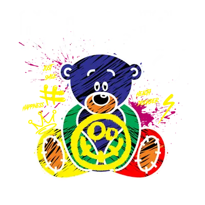 Streetwear Teddy Bear Graffiti DTF Transfer - Anti Social Smiley Design