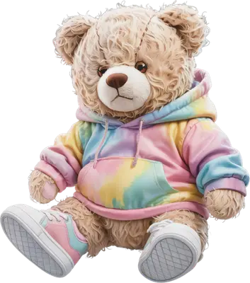 Streetwear Teddy Bear in Tie-Dye Hoodie DTF Transfer