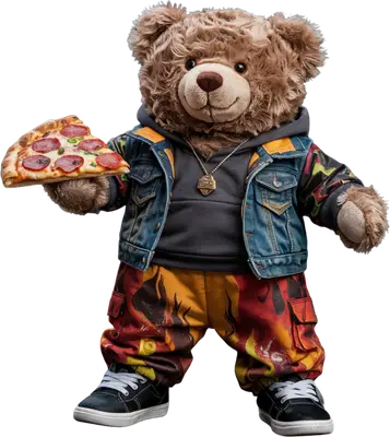 Streetwear Teddy Bear Pizza DTF Transfer | Cool Apparel Design