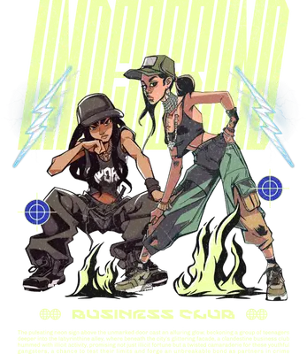Step into the urban scene with this captivating Streetwear Women DTF transfer, showcasing two fiercely confident women embodying raw street style. Dressed in edgy cargo pants, crop tops, and hats, their powerful poses are framed by dynamic neon green flames and electric lightning bolts. The backdrop features "UNDERGROUND" in distressed text, with "BUSINESS CLUB" subtly at the base, creating a gritty, yet vibrant aesthetic. This ready to press design captures the essence of rebellious cool, perfect for making a bold statement. This unique heat transfer design is perfect for anyone who loves urban fashion, hip-hop culture, or simply wants to express a bold, independent spirit. It's an ideal iron on transfer for individuals looking to customize their wardrobe or for small businesses creating unique apparel lines. Gift it to a friend who lives for underground music scenes, or use it to create matching shirts for your crew attending a concert or festival. It’s also a fantastic option for crafters and Etsy sellers seeking distinctive graphic elements. Applying this heat press transfer is incredibly easy, making it suitable for both experienced crafters and beginners. Our high-quality DTF transfers adhere beautifully to a wide range of materials including cotton, polyester, cotton-poly blends, and even nylon. For best results, use a heat press at 300-325°F for 15 seconds with medium pressure. A household iron can also be used with firm, even pressure. There's no weeding required – just peel and press! Perfect for custom t-shirts, hoodies, sweatshirts, tote bags, pillow covers, and even denim jackets. For lasting durability, wash garments inside out and tumble dry low. Experience superior quality with this ready to press transfer. It features vibrant, full-color printing that captures every fine detail of the artwork, ensuring your finished product looks professional and eye-catching. Our DTF transfers are known for being crack-resistant, providing a soft-to-the-touch feel without the heavy, plasticky texture of traditional vinyl. Each direct to film transfer is meticulously printed on premium DTF film with a strong adhesive backing, guaranteeing excellent wash durability and a smooth application process for consistently professional results.