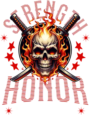 Strength & Honor Samurai Skull with Flames DTF Transfer