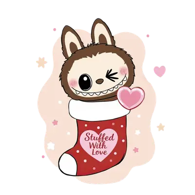 "Stuffed With Love" Cute Monster in Stocking DTF Transfer