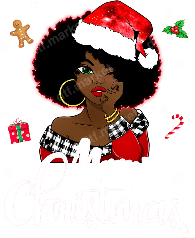 Stylish Black Girl Merry Christmas DTF Transfer | Afro Santa Hat Winking Design