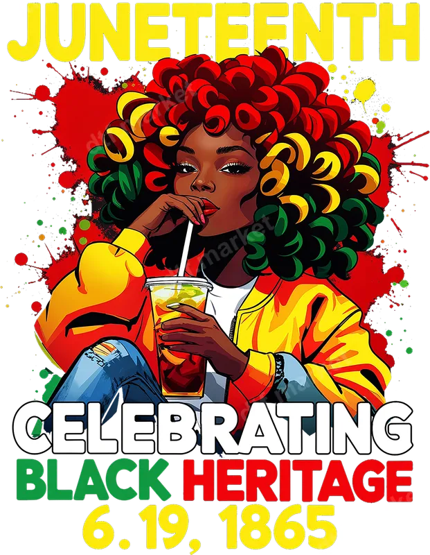 See allEmbrace and celebrate Black heritage with this stunning Juneteenth DTF transfer. Featuring a beautifully illustrated Black woman with vibrant, Pan-African colored hair (red, yellow, green) and a chic yellow jacket, sipping a refreshing drink, this design exudes modern pride and style. The artwork is framed by dynamic paint splatters in matching celebratory colors, with the prominent text 'JUNETEENTH CELEBRATING BLACK HERITAGE 6.19.1865.' This premium, ready to press design is perfect for making a powerful statement. This captivating heat press transfer is ideal for individuals, community groups, and organizations looking to commemorate Juneteenth and honor Black history. It's perfect for Juneteenth celebrations, parades, cultural events, or as an everyday display of pride. Create meaningful apparel for family gatherings, protest marches, or as a thoughtful gift for friends and loved ones who cherish their heritage. This versatile design allows you to express solidarity and joy. Our high-quality DTF transfers are incredibly versatile and can be applied to a wide range of materials, including cotton, polyester, and cotton-poly blends. Achieving a professional finish is simple: use a heat press at 300-325°F for 15 seconds with medium pressure, then perform a cool peel. For home users, a household iron can also be used with careful application. Forget about tedious weeding – this iron on transfer is ready to go directly onto your chosen garment, saving you time and effort. Experience superior print quality with our durable DTF film, designed for vibrant colors and exceptional detail that lasts. Each t-shirt transfer is engineered to be crack-resistant, peel-resistant, and incredibly soft to the touch, ensuring comfort and longevity. The strong adhesive ensures your design stays put wash after wash, maintaining its vivid appearance. Elevate your apparel with a professional-grade transfer that truly stands out.