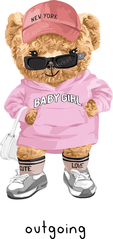 See allThis trendy DTF transfer features a stylish teddy bear rocking an urban streetwear look. The bear wears cool black sunglasses, a pink "NEW YORK" baseball cap, and an oversized pink hoodie boldly stating "BABY GIRL." Completing the outfit are white sneakers and socks detailed with "CUTE" and "LOVE," along with a chic white shoulder bag. This design captures a youthful, fashion-forward vibe, making it a perfect ready to press statement piece for any garment. Ideal for teenagers, young adults, and anyone who loves cute yet edgy fashion, this heat transfer is perfect for personalizing everyday wear or gifting to a friend with an outgoing personality. Whether you're heading to a casual outing, a music festival, or simply want to express your unique style, this design adds an instant cool factor. It’s a fantastic choice for birthday presents or just updating your wardrobe with a fresh, city-inspired look. Our premium direct to film transfer can be easily applied to a wide range of fabrics, including cotton, polyester, and their blends. For best results, use a heat press at 300-325°F for 15 seconds with medium pressure. It can also be applied with a household iron, making customization accessible for everyone. Enjoy the convenience of an iron on transfer that requires absolutely no weeding, saving you time and effort. Experience superior quality with this vibrant apparel transfer. Crafted using professional DTF film and strong adhesive, the design boasts bright, crisp colors that resist cracking and fading, ensuring long-lasting wear. The transfer is soft to the touch, seamlessly blending with the fabric for a comfortable feel. Elevate your custom t-shirt transfer projects with a durable and eye-catching design that truly stands out.