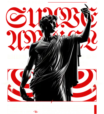 This captivating DTF transfer features a dramatic black-and-white classical statue, reminiscent of ancient Greek or Roman sculptures, brought into the modern era with an edgy streetwear aesthetic. Bold red gothic script, declaring 'SUPREME' and 'THE SUAVE ANGEL', overlays the background, creating a powerful contrast and a rebellious artistic statement. Accented with modern graphic elements like a barcode, abstract red swirls, and subtle sparkles, this design exudes a sophisticated yet defiant vibe. It’s a truly ready to press graphic that merges art history with contemporary urban fashion. This striking heat transfer is perfect for individuals who appreciate classical art with a modern, rebellious twist. Ideal for streetwear enthusiasts, art students, urban fashion designers, or anyone looking to make a bold personal statement. It's a fantastic iron on transfer choice for small boutique owners, Etsy sellers creating unique apparel lines, or crafters looking for standout designs. Use it for concert outfits, art gallery visits, urban exploration, or as a unique gift for friends who love edgy, high-fashion graphics. Embrace your inner rebel and showcase this distinctive artwork. Applying this heat press transfer is incredibly simple. It adheres flawlessly to a wide range of materials including cotton, polyester, cotton-poly blends, and even nylon, making it versatile for many projects. Achieve professional results with a heat press set at 300-325°F for 15 seconds with medium pressure, or easily apply with a household iron. Forget the hassle of weeding; simply peel and press! This design is perfect for customizing t-shirts, hoodies, sweatshirts, stylish tote bags, unique denim jackets, and even creative pillow covers. For lasting durability, wash garments inside out and tumble dry on low heat. Experience superior quality with this ready to press transfer. It boasts vibrant, full-color printing that captures every fine detail of the classical statue and intricate gothic script. Our direct to film transfer technology ensures a crack-resistant finish that's soft to the touch, avoiding the heavy, stiff feel often associated with traditional vinyl. Each apparel transfer is produced on premium DTF film with a robust adhesive backing, guaranteeing professional-grade results and exceptional washability for all your creative endeavors.
