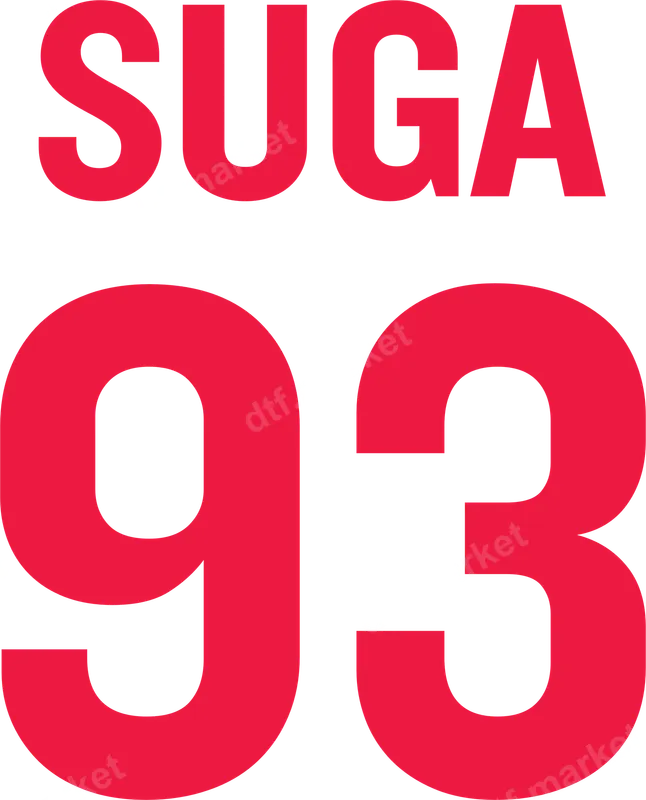 See allThis bold and vibrant SUGA 93 DTF transfer features the iconic name 'SUGA' prominently above the number '93' in a striking red color. It's a clean, modern design perfect for K-Pop fans, particularly ARMY. This high-quality direct to film transfer is ready to press onto your favorite apparel, offering a professional finish without the hassle. Ideal for dedicated K-Pop enthusiasts and BTS ARMY, this heat transfer design lets you proudly display your support for Min Yoongi, also known as SUGA. Perfect for concert outfits, fan meetups, or everyday wear, it makes a fantastic personalized gift for birthdays, holidays, or just because. Create custom shirts, hoodies, or tote bags for yourself and fellow fans. Applying this iron on transfer is simple with a heat press at 300-325°F for 15 seconds with medium pressure. It adheres beautifully to a wide range of fabrics, including cotton, polyester, and various blends. Forget the tedious weeding process of vinyl transfer; our ready to press transfers are designed for effortless application, ensuring a smooth project every time. Crafted with premium DTF film and vibrant inks, this t-shirt transfer ensures brilliant colors that are crack-resistant and soft to the touch. The durable adhesive provides long-lasting wear, making your custom apparel look great wash after wash. Enjoy professional-grade results that stand out, whether you're creating a single item or a batch of fan gear.