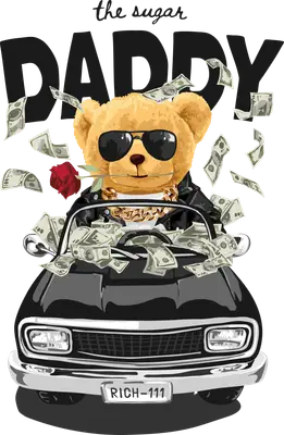 Sugar Daddy DTF Transfer | Cool Teddy Bear with Money & Car Design