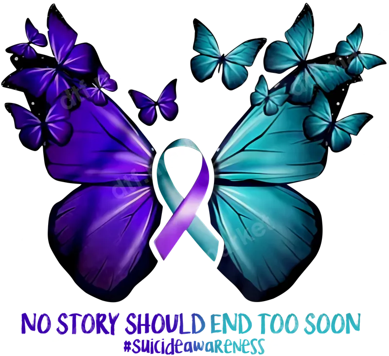 Suicide Awareness Butterfly DTF Transfer - No Story Should End Too Soon