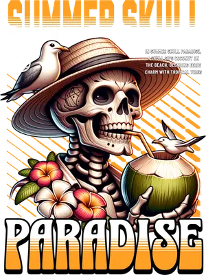 Summer Skull Paradise Tropical Beach Skeleton DTF Transfer