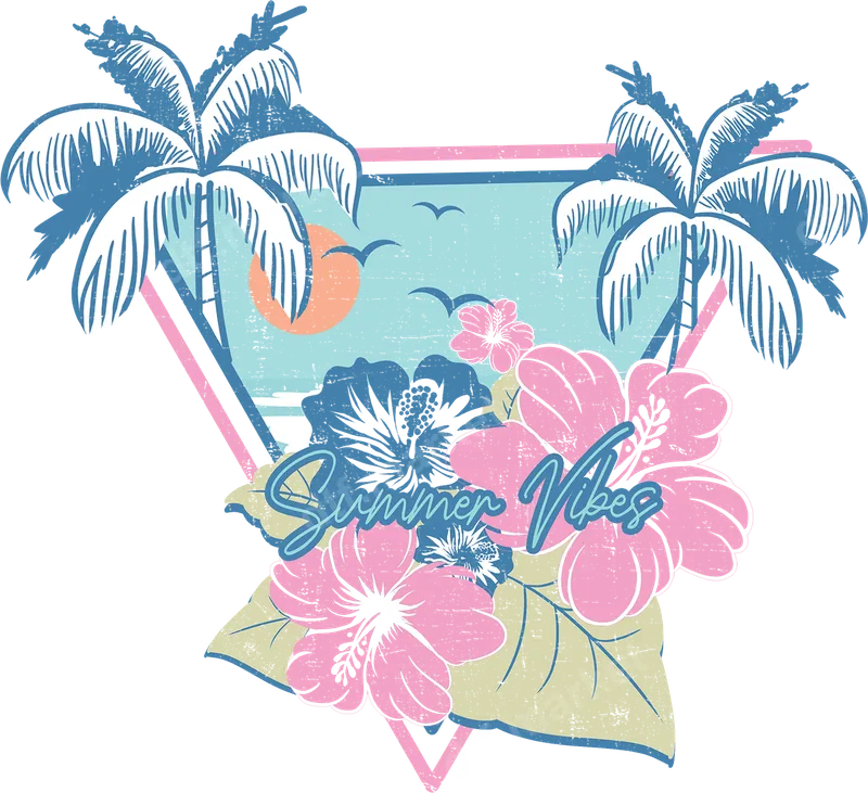 See allCapture the essence of an endless summer with this vibrant "Summer Vibes" DTF transfer. This retro-inspired design showcases two distressed palm trees framing a serene beach sunset, complete with flying birds and lush pink and blue hibiscus flowers. The iconic "Summer Vibes" text in a playful script sits prominently, making this a perfect ready to press heat transfer for anyone yearning for sunny days. This versatile design is ideal for beach lovers, vacationers, and anyone looking to infuse their wardrobe with a laid-back, tropical feel. It makes a fantastic gift for friends planning a cruise, family heading to a beach resort, or as a treat for yourself to celebrate summer. Perfect for pool parties, casual outings, or simply bringing sunshine to your everyday apparel. Our premium direct to film transfer is incredibly easy to apply, working seamlessly on various materials including cotton, polyester, and their blends. This iron on transfer requires a heat press at 300-325°F for 15 seconds with medium pressure, then peel cold. You can even use a household iron for smaller applications. Enjoy the convenience of no weeding required, unlike traditional vinyl transfers. Experience superior quality with every heat press design. Our DTF transfers boast incredibly vibrant colors that resist cracking and fading, ensuring your garment looks fresh and new, wash after wash. The soft-to-touch finish provides maximum comfort, while the strong adhesive ensures a durable bond to your t-shirt or chosen item.