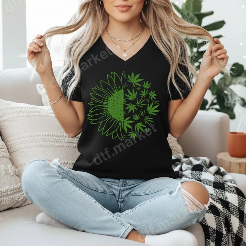 See allEmbrace a unique blend of nature and style with our eye-catching Sunflower Cannabis Leaf DTF transfer. This vibrant design features a sunflower, half outlined and half intricately filled with various cannabis leaves, creating a striking botanical pattern. It's a premium quality, ready to press design that adds an earthy yet bold statement to any garment. This distinctive transfer is perfect for cannabis enthusiasts, nature lovers, or anyone who appreciates unique botanical art. It makes an excellent gift for birthdays, festivals, or just a thoughtful present for friends who enjoy expressive fashion. Personalize t-shirts, hoodies, and accessories to showcase your individual style with this standout heat press transfer. Applying this direct to film transfer is effortless. It's designed for simple application with a heat press at 300-325°F for 15 seconds with medium pressure, or can even be applied with a household iron on most fabrics. No tedious weeding or layering required, making it a quick and convenient iron on transfer for cotton, polyester, and their blends. Crafted with professional-grade DTF film, this t-shirt transfer ensures brilliant colors and crisp details that last. Our heat press ready transfers are known for their vibrant, crack-resistant finish and soft-to-touch feel, providing a durable and comfortable addition to your apparel. Experience professional results with every press.