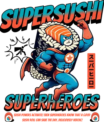 SuperSushi Heroes DTF Transfer | Funny Foodie Superhero Iron On Design