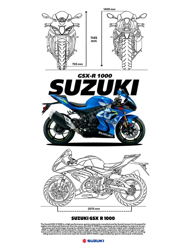Suzuki GSX-R 1000 Motorcycle Racing Blueprint DTF Transfer