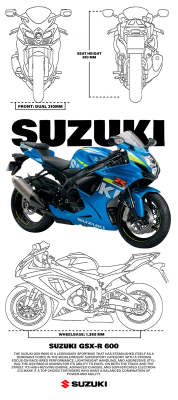 See allThis premium DTF transfer showcases the iconic Suzuki GSX-R 600 sportbike in vivid detail, featuring its distinctive blue and yellow livery, along with technical illustrations and the official Suzuki logo. It’s a bold and dynamic design, perfect for expressing your passion for high-performance motorcycles. This ready to press transfer brings the thrill of the racetrack directly to your wardrobe or accessories. Ideal for motorcycle enthusiasts, sportbike riders, mechanics, and racing fans, this heat transfer is perfect for personalizing apparel for rallies, track days, casual wear, or gifting. Surprise a dad, husband, friend, or son who loves superbikes on their birthday, Father's Day, or any special occasion. It's also great for custom apparel businesses looking to offer unique automotive designs. Our high-quality iron on transfer is designed for effortless application across a wide range of fabrics including cotton, polyester, and various blends. Achieve professional results with a heat press set at 300-325°F for 15 seconds with medium pressure. For home users, a household iron can also be used following specific instructions. Enjoy a hassle-free process with no weeding required, making customization quick and simple. Experience superior durability and a vibrant finish with every application. Our DTF film ensures your designs are crack-resistant, soft to the touch, and maintain their brilliant colors wash after wash. Manufactured with professional-grade DTF transfer materials and strong adhesive, this t-shirt transfer delivers retail-quality results that stand out and last.