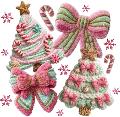 Sweet Pastel Christmas Trees & Bows DTF Transfer