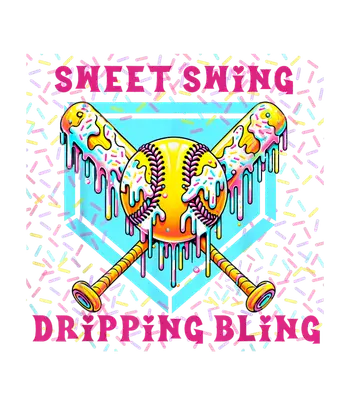 Sweet Swing Dripping Bling DTF Transfer | Candy Baseball Softball Design