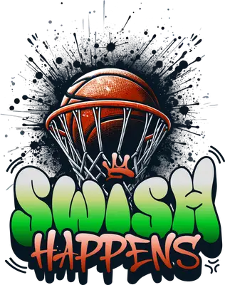 Swish Happens Basketball DTF Transfer | Graffiti Sports Hoop Design