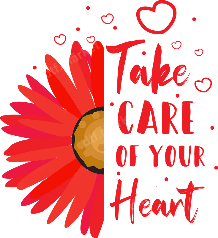 Take Care of Your Heart DTF Transfer | Red Flower Health Awareness Design